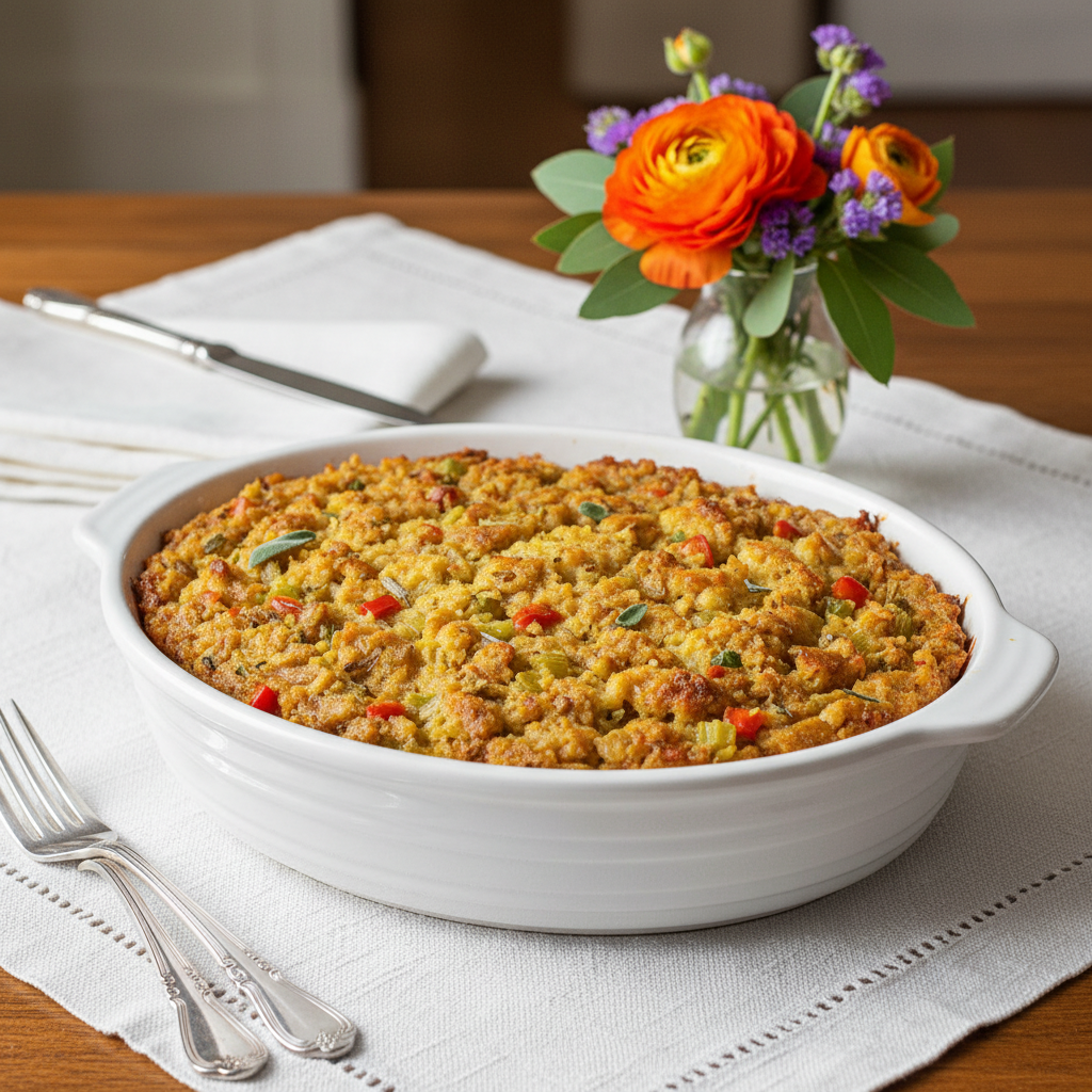 Southern Soul Food Cornbread Dressing Recipe 🍞 Overview Ingredients Directions Step 1: Prepare the Cornbread Step 2: Prepare the Dressing